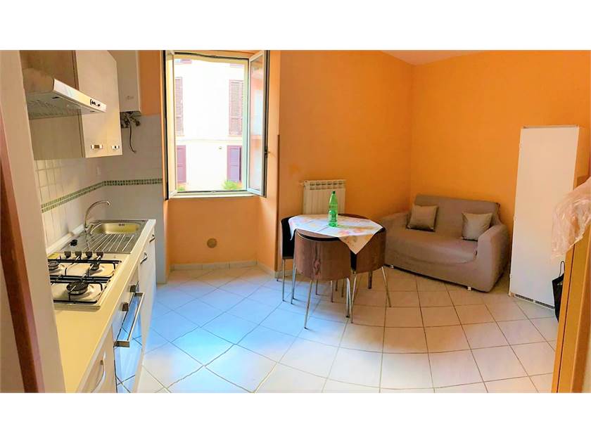 Appartamento a Frosinone alta in zona Piazza Garibaldi situato al primo piano di una palazzina senza ascensore. L'appartamento è un bilocale completamente arredato, composto da: soggiorno con angolo cottura, camera da letto, bagno con box doccia, porta blindata e infissi in alluminio, riscaldamento autonomo. Spese condominiali pari a 20 euro.