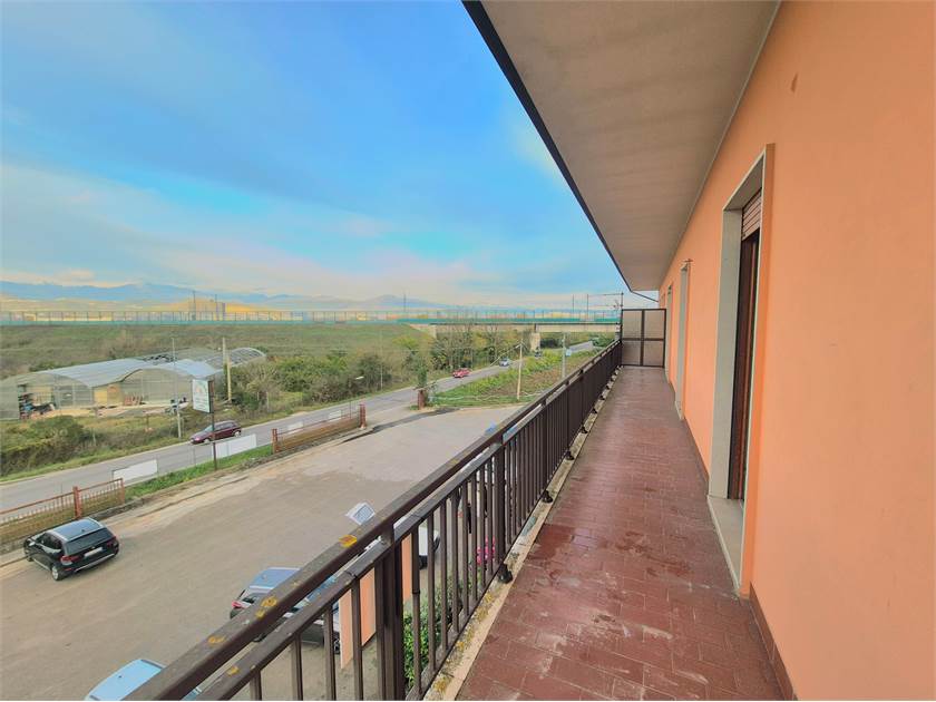 Composto da: ampio soggiorno, grande cucina con tinello, disimpegno e corridoio, tre camere matrimoniali, due bagni, terrazzo e balcone; posti auto sull'ampia corte condominiale.